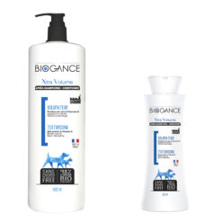 L’après-shampooing volumateur Xtra Volume pour chien est formulé à base de protéine de soie et enrichi en vitamine E.