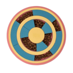 Notons en plus que le puzzle est simple, il suffit pour le chien de pousser les panneaux. C’est une bonne chose si vous voulez placer l’entièreté de la ration dans cette dernière: cela fera réfléchir votre chien, le ralentira dans l’ingestion des aliments, sans pour autant le frustrer.