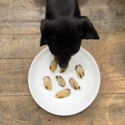 Les moules vertes fraîches peuvent être données deux fois par semaine. Elle boosteront les articulations de votre animal mais pas que: riches en omega3 elle soutiendront également le système nerveux et neurologique de votre chien, mais aussi son système immunitaire. Bref, que du positif pour votre animal!