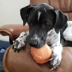 - Un JOUET À MÂCHER résistant en caoutchouc. Il est conçu pour résister aux mastiqueurs acharnés! Dans ce jouet, vous pourrez insérer des friandises telles que des biscuits ou de la nourriture. Les croquettes se glisseront facilement dedans, la viande crue devra être coupée en morceaux assez petits pour pouvoir y être insérés (idem pour les fruits et légumes).
